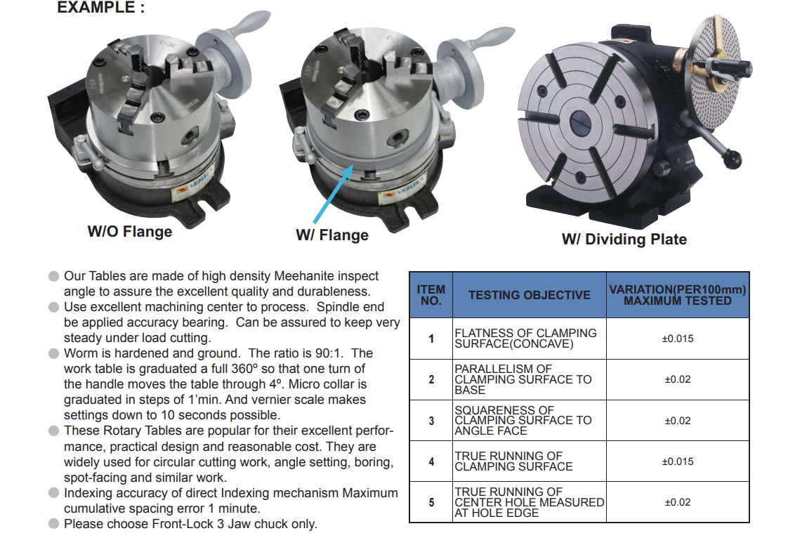 Bàn phân độ , bàn chia độ Vertex HV-4 được dùng chủ yếu trong trung tâm gia công, cố định trục chính tạo góc độ ổn định khi gia công.