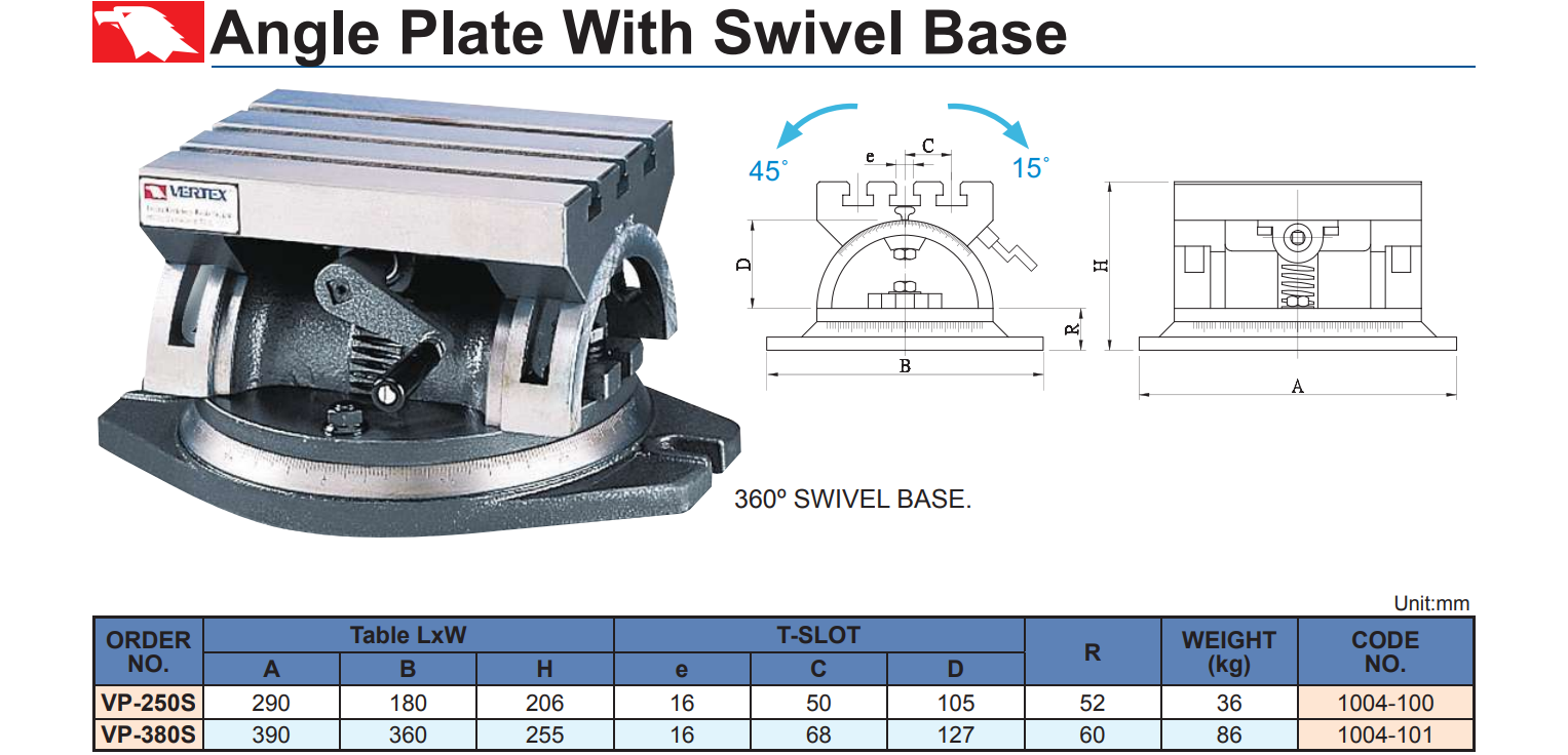 Bàn điều chỉnh góc nghiêng Vertex VP-250S dùng để gá kẹp và điều chỉnh chi tiết khi gia công chi tiết trên máy phay, và máy công cụ chuyên dùng…