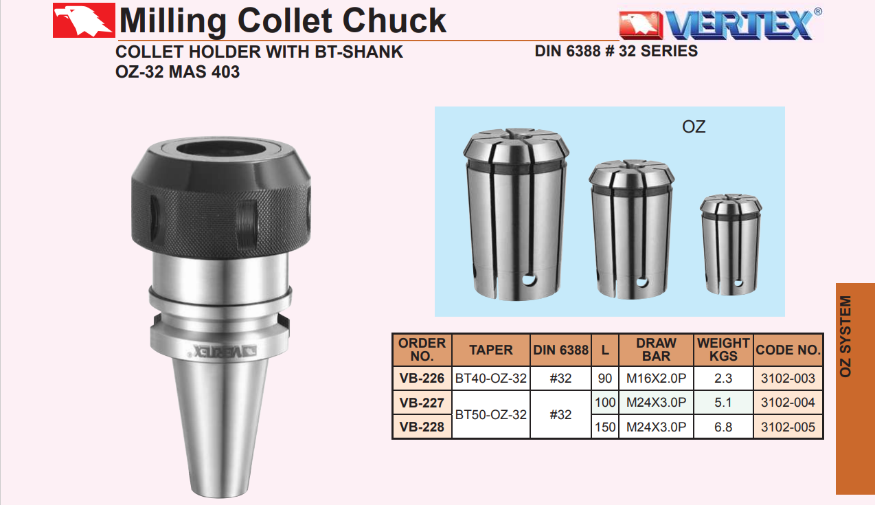 – Collet OZ-25 theo tiêu chuẩn DIN 6388 (xem sản phẩm Collet OZ).