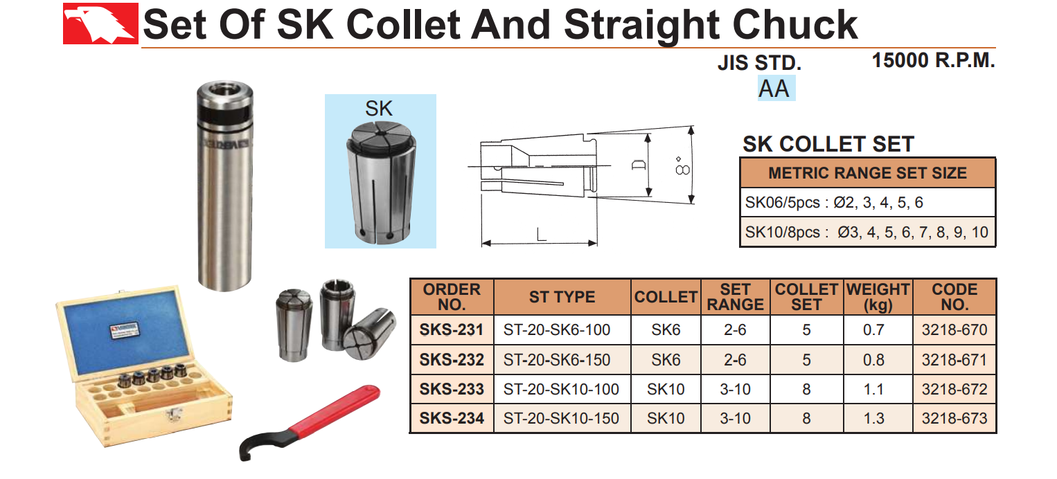 BẦU KẸP DAO PHAY CHUÔI TRỤ VERTEX SKS-210; SKS-211; SKS-212; SKS-213; SKS-214; SKS-231; SKS-232; SKS-233; SKS-234.
