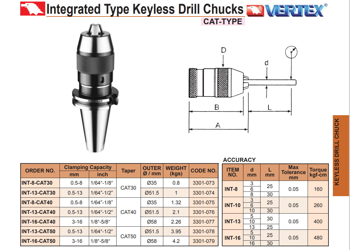 – Độ chính xác của bầu kẹp mũi khoan là: 0.05mm.