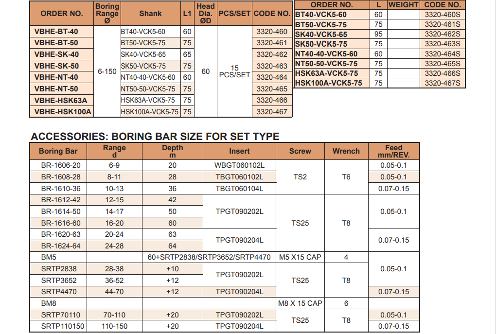 – Bộ đầu doa tinh VBHE của VERTEX được sử dụng thích hợp doa chính xác các lỗ có đường kính từ 6-150mm.