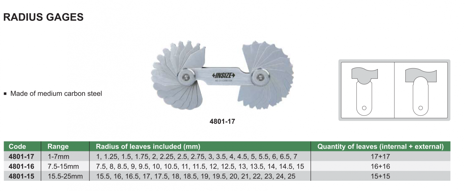 Bộ dưỡng đo ren INSIZE 4801-17 , RADIUS GAGES 4801-17