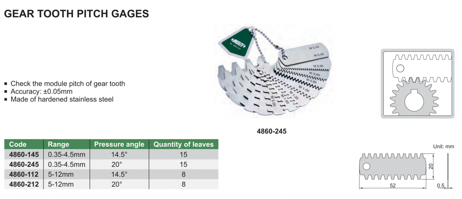 Bộ dưỡng đo ren INSIZE 4860-245 , GEAR TOOTH PITCH GAGES 4860-245