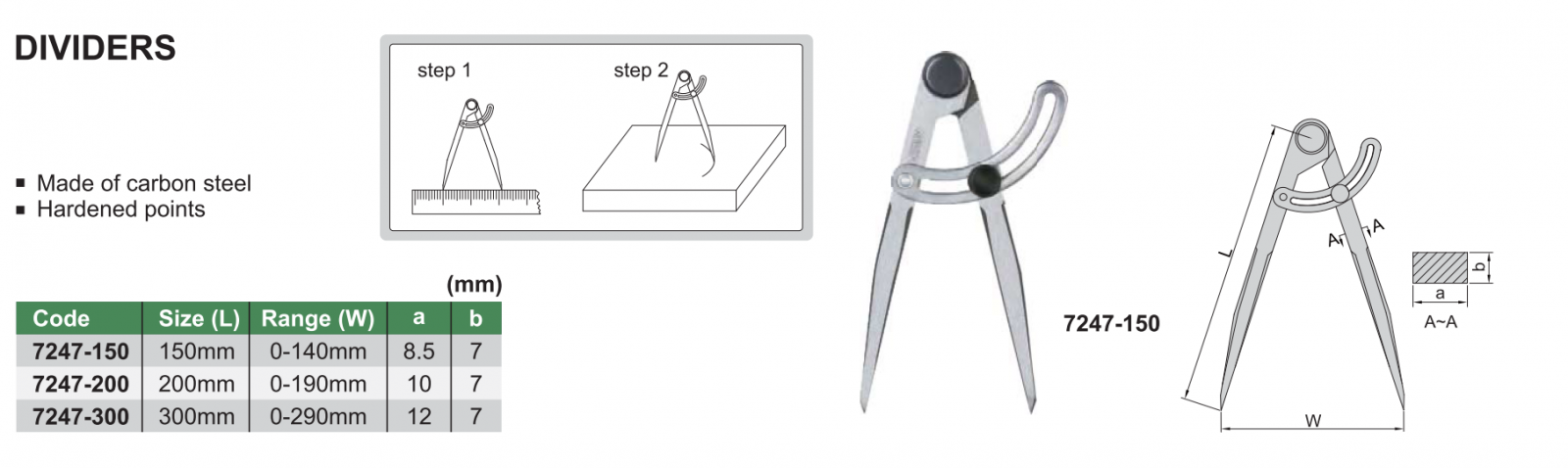 Compa INSIZE 7247-150 , DIVIDERS 7247-150