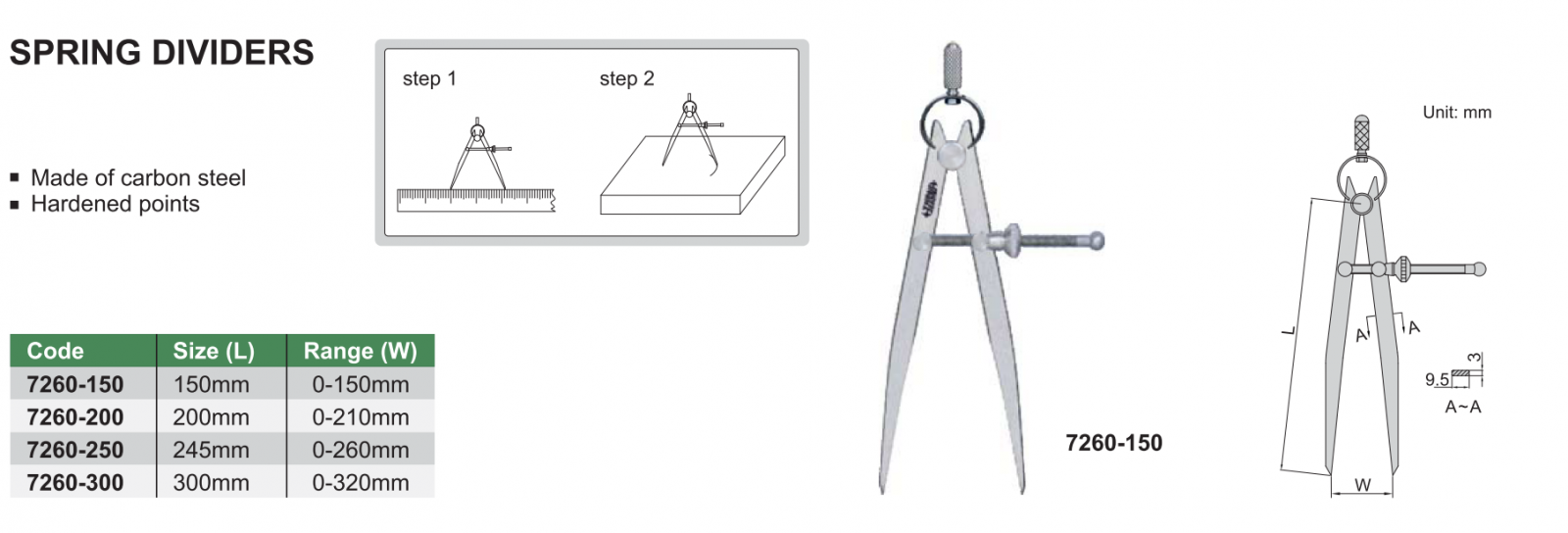 Compa INSIZE 7260-150 , SPRING DIVIDERS 7260-150