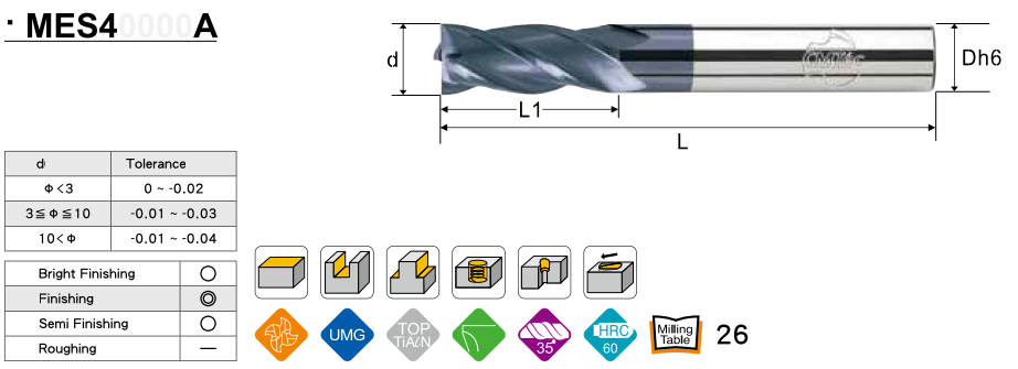 Dao phay ngón CMTéc dòng M520 là dòng dụng cụ cắt đa dụng cho hiệu suất cực cao tạo bề mặt chi tiết mịn bóng, dụng cụ cắt này áp dụng cho công việc gia công nhiều vật liệu như các loại thép hợp kim, thép gang, thép dẻo, Inox ... thích hợp gia công độ chính xác cao, đáp ứng được những tiêu chuẩn khắt khe trong gia công.