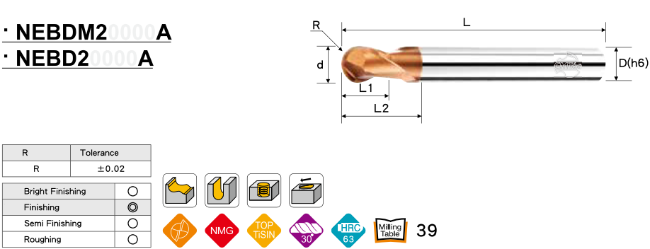 Dao phay ngón CMTéc dòng N620 là dòng dụng cụ cắt đa dụng cho hiệu suất cực cao tạo bề mặt chi tiết mịn bóng, dụng cụ cắt này áp dụng cho công việc gia công nhiều vật liệu như các loại thép hợp kim, thép gang, thép dẻo, Inox ... thích hợp gia công độ chính xác cao, đáp ứng được những tiêu chuẩn khắt khe trong gia công.