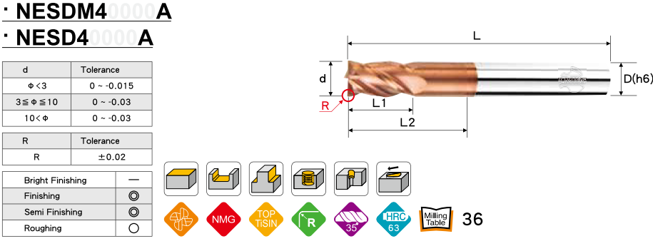 Dao phay ngón CMTéc dòng N620 là dòng dụng cụ cắt đa dụng cho hiệu suất cực cao tạo bề mặt chi tiết mịn bóng, dụng cụ cắt này áp dụng cho công việc gia công nhiều vật liệu như các loại thép hợp kim, thép gang, thép dẻo, Inox ... thích hợp gia công độ chính xác cao, đáp ứng được những tiêu chuẩn khắt khe trong gia công.