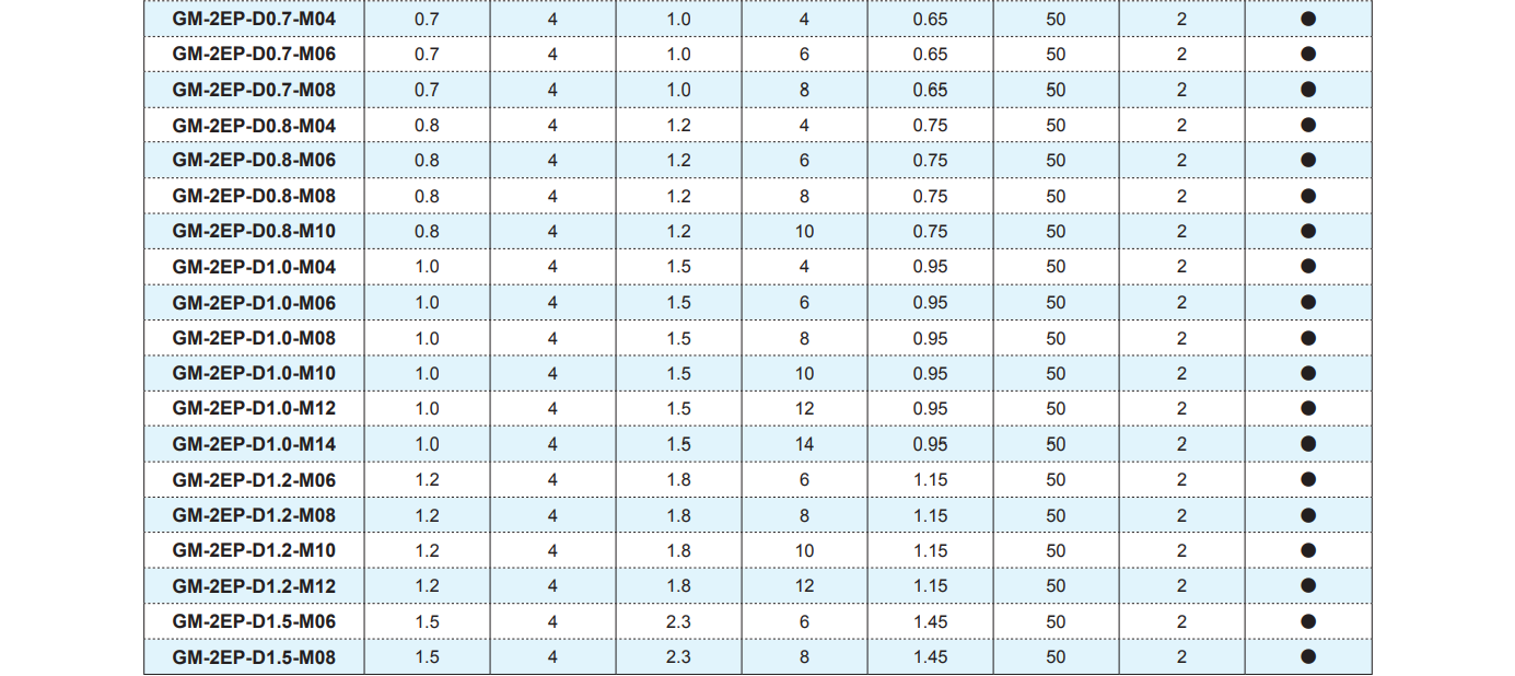 Mã sản phẩm: GM-2EP-D1.2-M10 ,GM-2EP-D1.2-M12 , GM-2EP-D1.5-M06