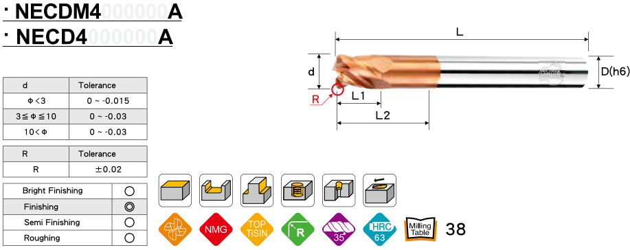 Dao phay ngón CMTéc dòng N620 là dòng dụng cụ cắt đa dụng cho hiệu suất cực cao tạo bề mặt chi tiết mịn bóng, dụng cụ cắt này áp dụng cho công việc gia công nhiều vật liệu như các loại thép hợp kim, thép gang, thép dẻo, Inox ... thích hợp gia công độ chính xác cao, đáp ứng được những tiêu chuẩn khắt khe trong gia công.