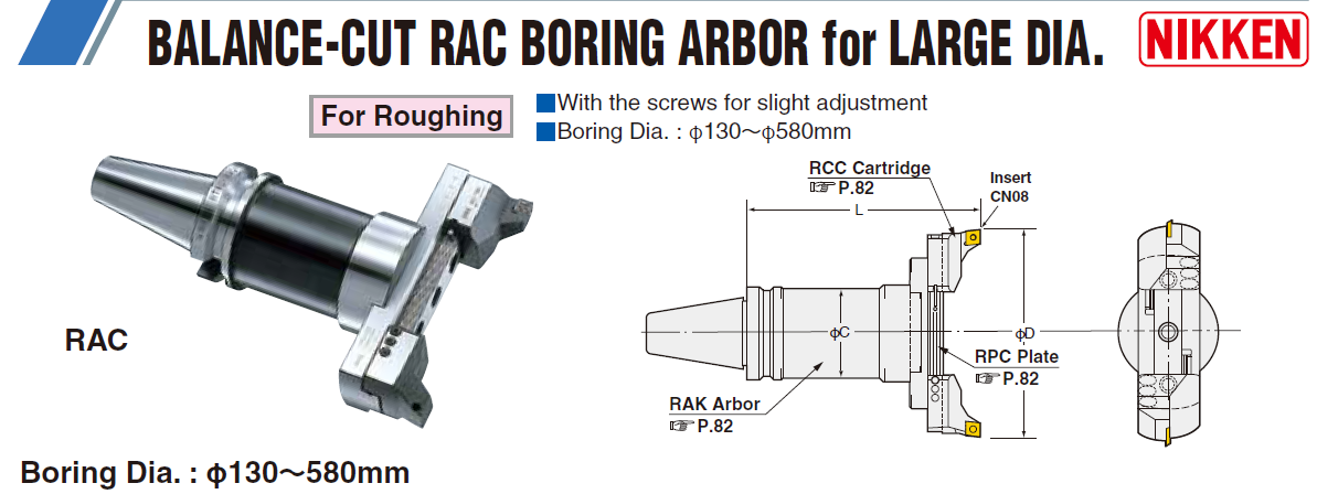 For HeavyDutyBoring of Iron andCastIron RCC-130 ×2 Insert TipCN08 |