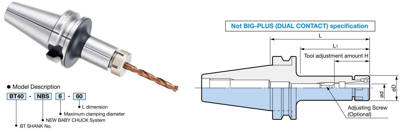 | BT40-NBS8-105 | 0.5-8 | 25 | 105 | 68 | 23-42 | NBC8- | 1.3 |