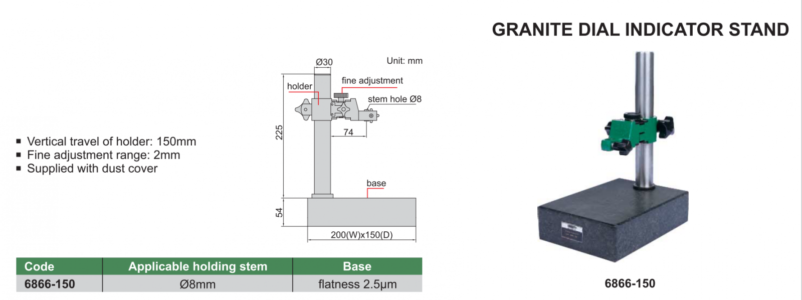 Đế granite gá đồng hồ so được hãng INSIZE sản xuất với chất lượng cao, sản phẩm được sử dụng nhiều trong các xưởng gia công cơ khí, được phân phối trên toàn quốc