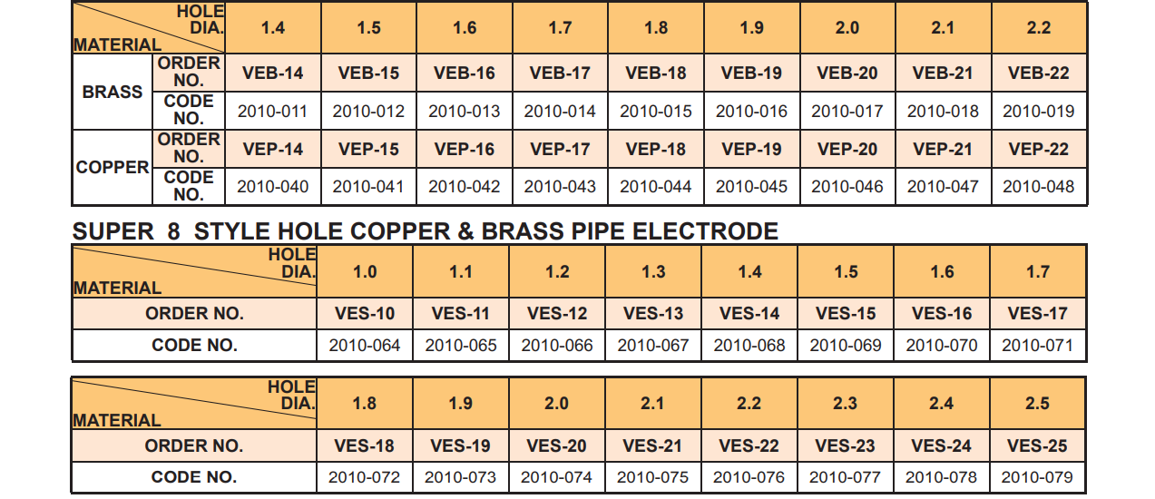 ĐIỆN CỰC ĐỒNG THAU CHO MÁY XUNG VERTEX VEP-14 , VEP-15 , VEP-16 , VEP-17 , VEP-18