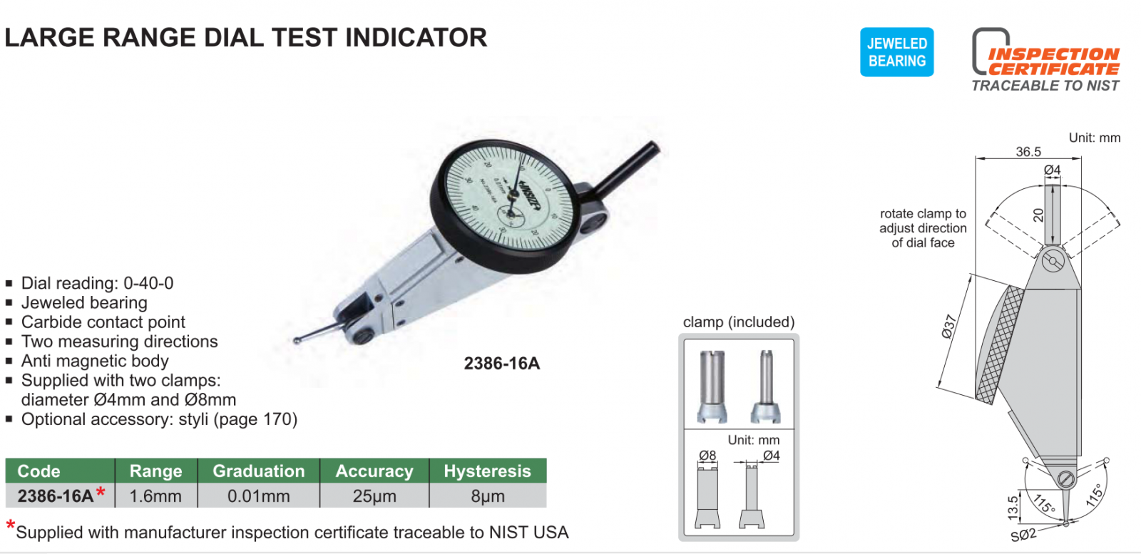 Đồng hồ so chân gập INSIZE là loại đông hồ so ứng dụng đo độ dơ, độ lệch trong gia công và sản xuất cơ khí