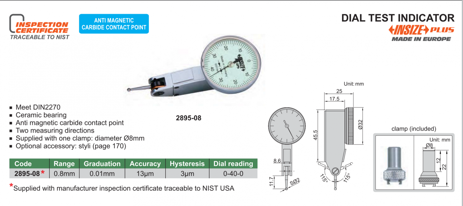 Đồng hồ so chân gập INSIZE là loại đông hồ so ứng dụng đo độ dơ, độ lệch trong gia công và sản xuất cơ khí