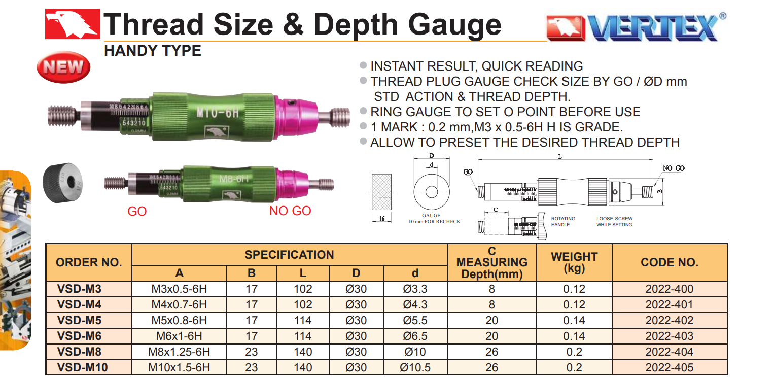 DƯỠNG ĐO REN VÀ CHIỀU SÂU VERTEX VSD-M3 , VSD-M4 , VSD-M5 , VSD-M6