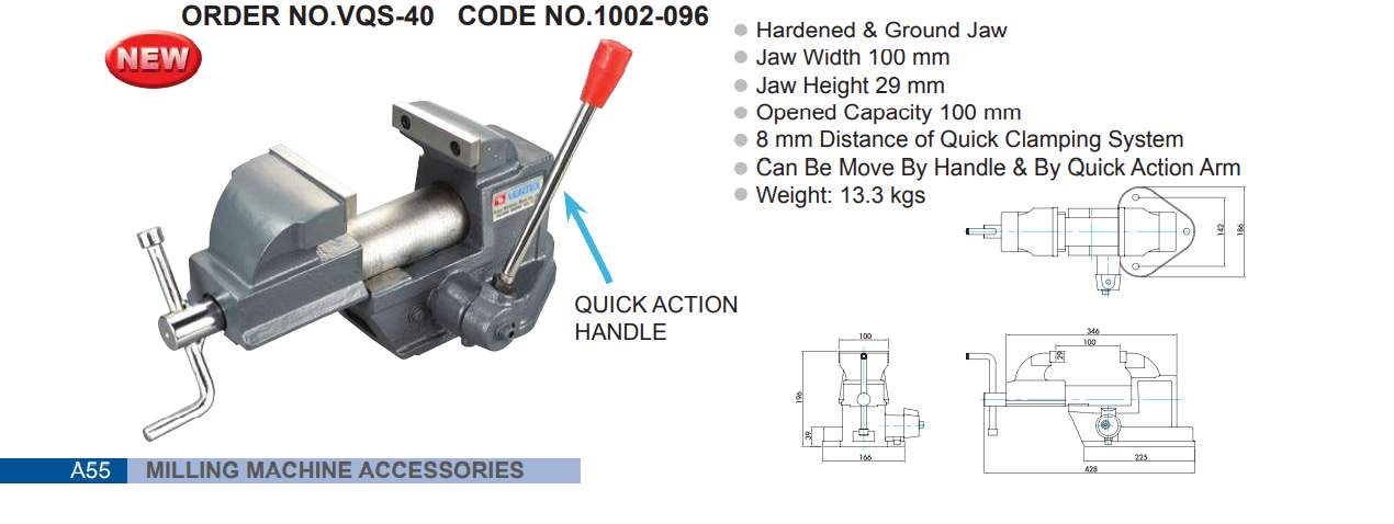 – Ê TÔ BÀN NGUỘI KẸP NHANH dùng để kẹp chặt nhanh các chi tiết cho thợ sửa nguội gia công tay. Cần kẹp nhanh cho phép má kẹp di chuyển tự do nhanh đến độ mở cần kẹp. Sau đó mới dùng cần vặn trục vít me để kẹp chi tiết (khoảng kẹp của trục vít me là 8 mm).