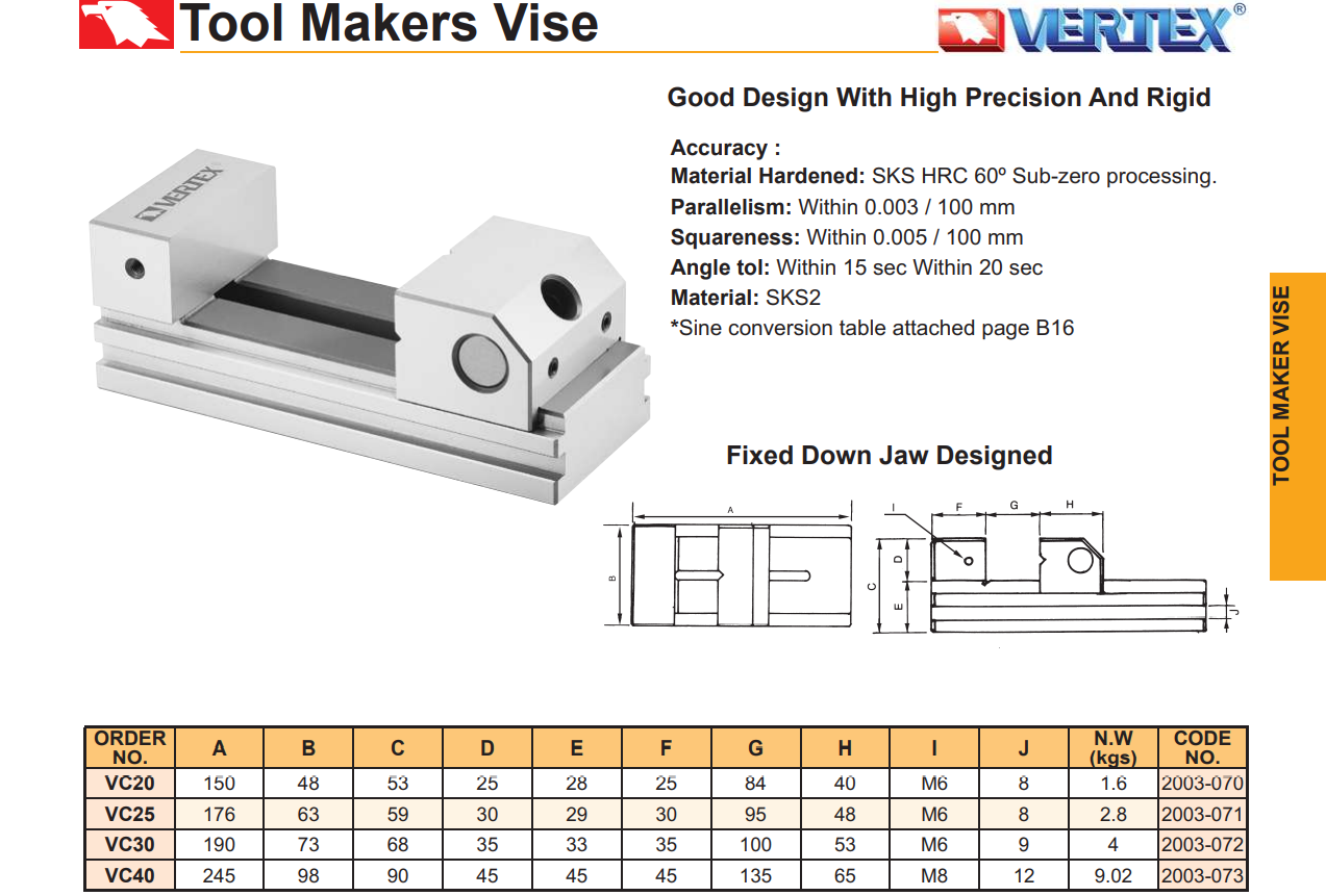 – Ê tô máy mài VC của VERTEX được thiết kế với độ chính xác và cứng vững cao.