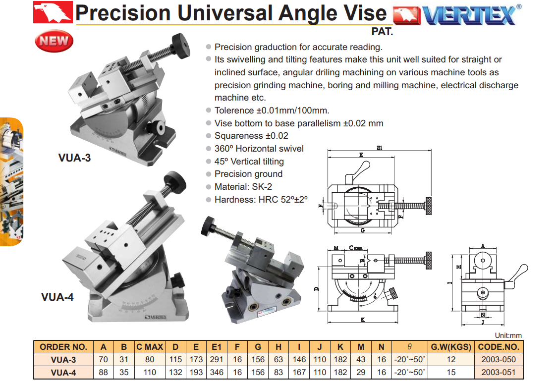 Ê tô máy mài nghiêng Vertex VUA-4 dùng để gá kẹp các chi tiết trong quá trình mài nghiêng.
