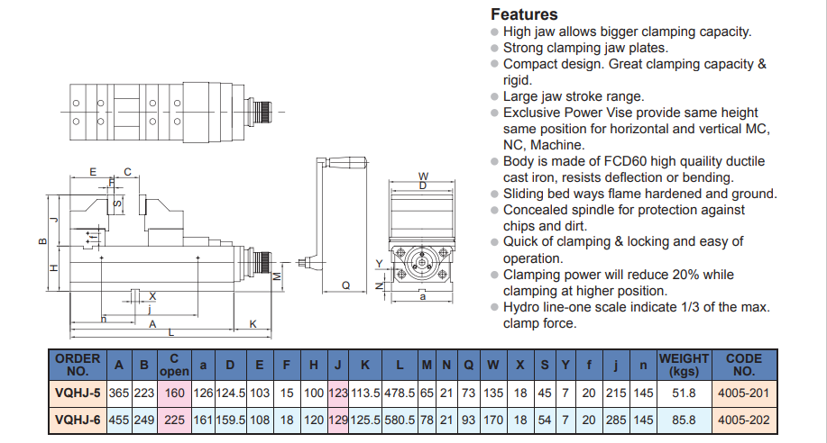 – Kết cấu cứng vững. Lực kẹp lớn, khoảng kẹp rộng và chống mài mòn cao.