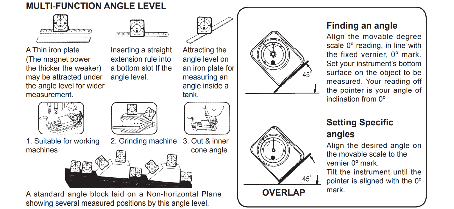 – Rất thuận lợi đo góc nghiêng của chi tiết khi đang gia công trên máy.