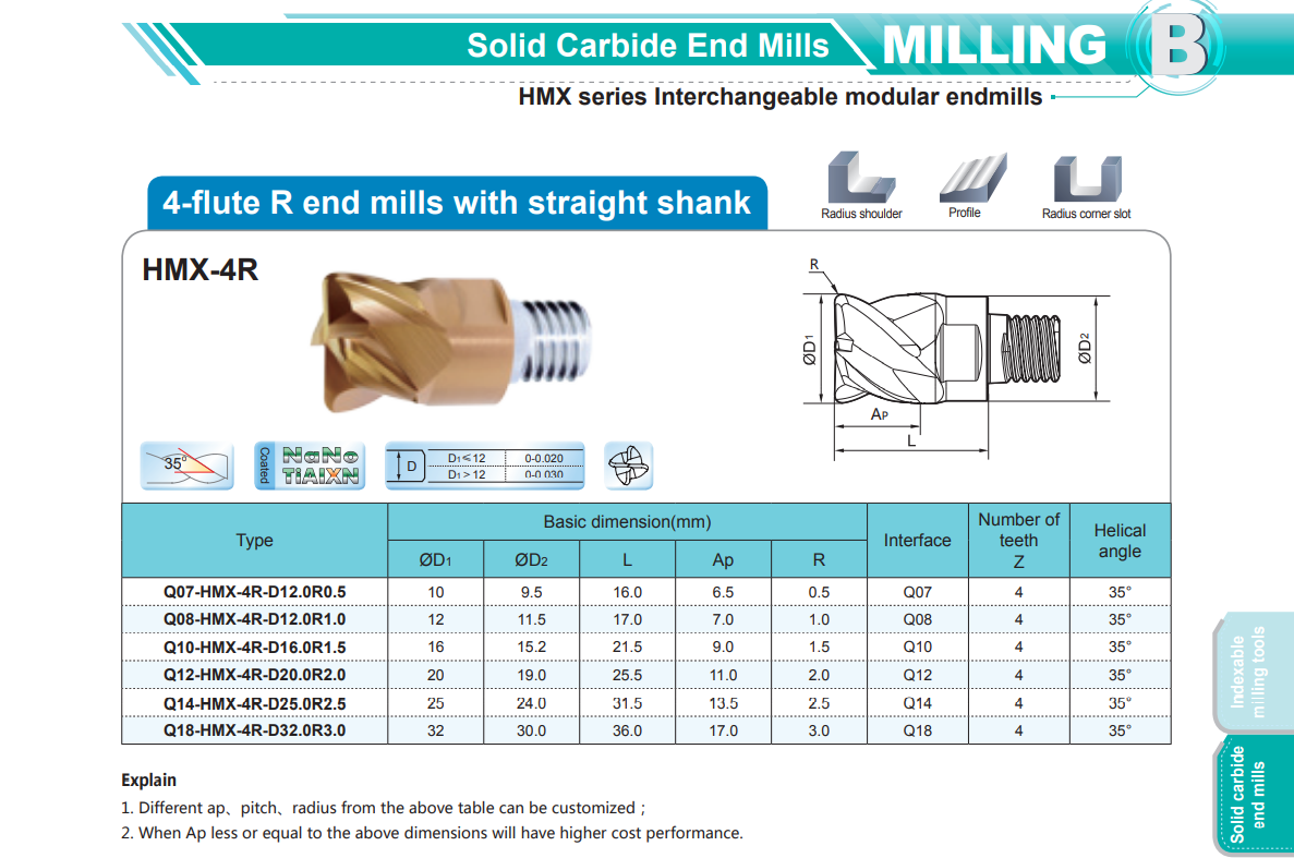 Lưỡi dao phay hợp kim ZCCCT HMX-4R là dòng dụng cụ cắt đa dụng cho hiệu suất cực cao tạo bề mặt chi tiết mịn bóng, dụng cụ cắt này áp dụng cho công việc gia công nhiều vật liệu như các loại thép hợp kim, thép gang, thép dẻo, Inox ... thích hợp gia công độ chính xác cao, đáp ứng được những tiêu chuẩn khắt khe trong gia công.