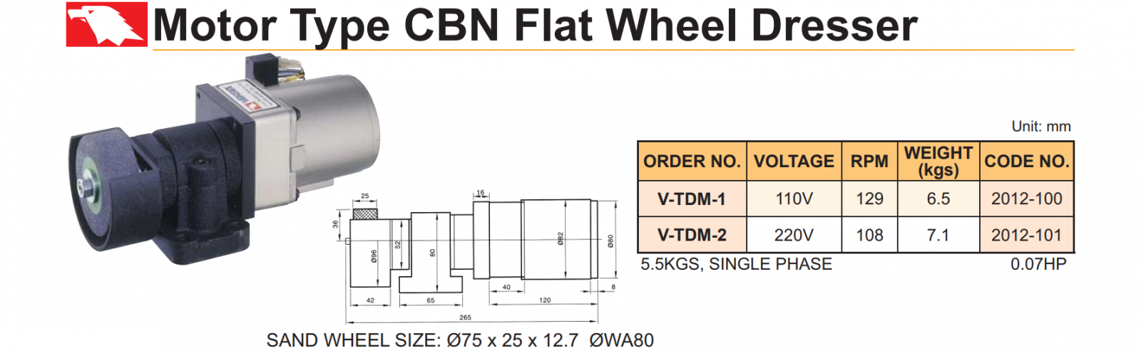 – Máy mài sửa đá mài CBN V-TDM-1, V-TDM-2 có mô tơ dùng nguồn điện 110V hoặc 220V.