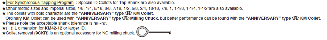 KM Collet Code No. (OD-ID) |