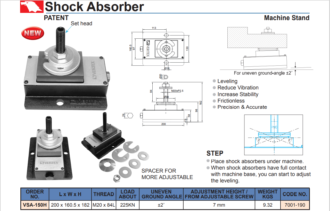 Thiết bị giảm rung động máy mã VSA-150H được hãng Vertex sản xuất với chất lượng cao, chuyên dùng cho việc giảm độ rung động trong quá trình gia công cơ khí.