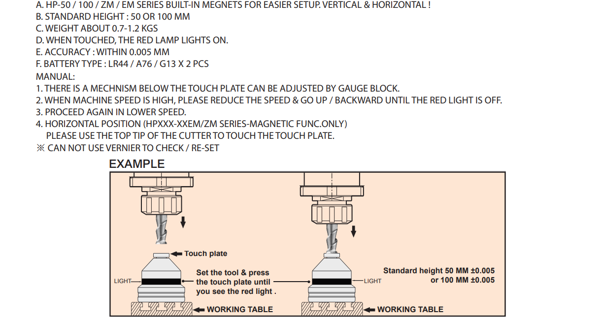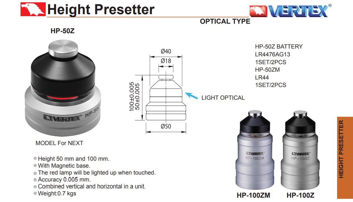– Thiết bị thiết lập chiều cao dụng cụ HP-50Z, HP-50ZM, HP-100Z, HP-100ZM: