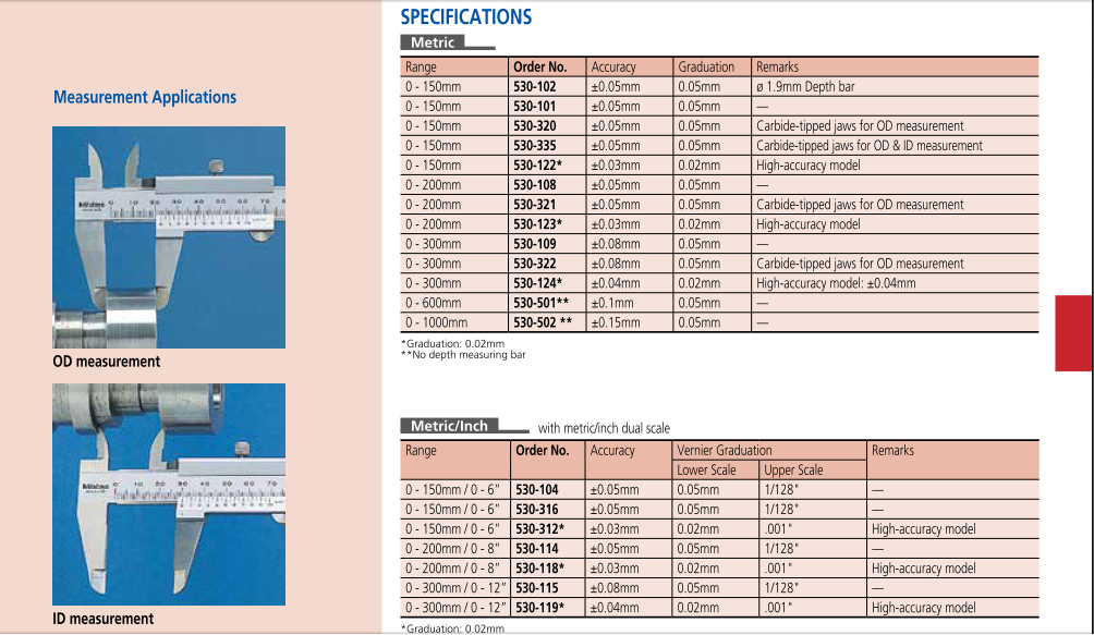Mã hàng 530-115 là thước cặp cơ khí 0-12''/0-300mm/0.02mm