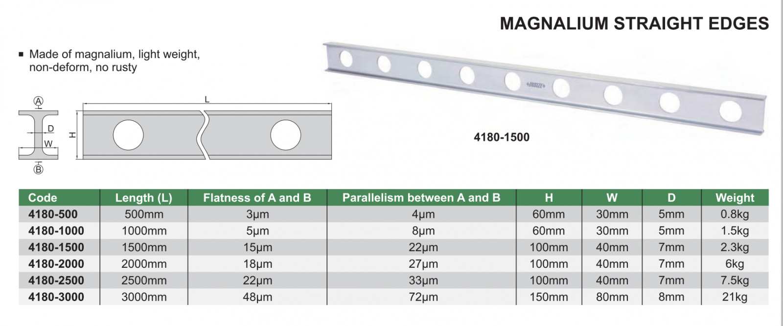 Thước đo độ thẳng INSIZE 4180-1500 , MAGNALIUM STRAIGHT EDGES 4180-1500