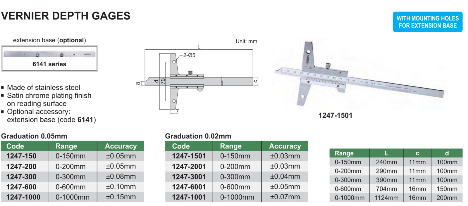 Thước đo sâu cơ khí INSIZE là đồ dùng có nhiều chức năng phạm vi đo rộng, độ chính xác tương đối cao, dễ sử dụng, giá cả rẻ…