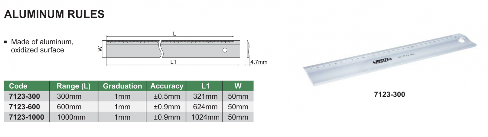 Thước lá INSIZE 7123-300 , ALUMINUM RULES 7123-300