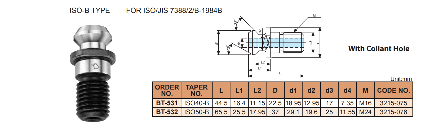 – Vít rút (đuôi chuột) cho bầu kẹp BT30, BT40, BT50: BT-510, BT-501, BT-502, BT-511, BT-503, BT-504, BT-512, BT-505, BT-506, BT-516, BT-517, BT-518, BT-519, BT-520, BT-521, BT-522, BT-523, BT-524, BT-525, BT-526, BT-527, BT-528, BT-529, BT-530, BT-531, BT-532, BT-533, BT-534, BT-535, BT-536, BT-537, BT-538, BT-539, BT-540, BT-541, BT-542, BT-543, BT-544, BT-545, BT-546, BT-547, BT-548, BT-556 của VERTEX dùng lắp với bầu kẹp kiểu BT30, BT40, BT50 để hít lên đài dao máy phay CNC.
